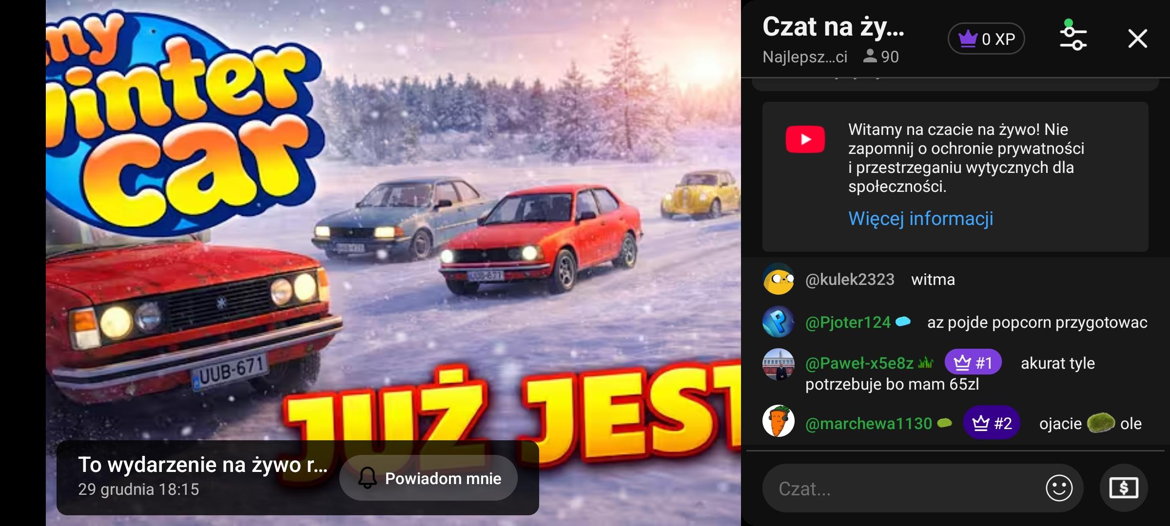 Jakby ktoś jeszcze nie widział to zaczynamy 15 min później i to z "Mojego Zimowego Auta"